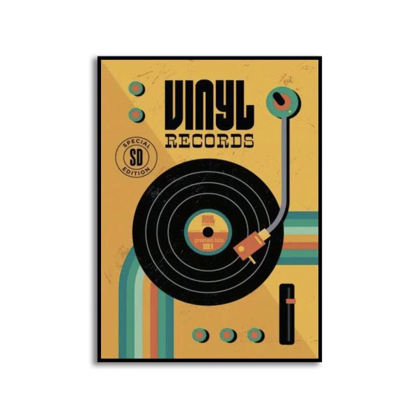 Deze levendige poster heeft een retro ontwerp met de tekst 'Vinyl Records' en 'Special Edition SD'. Het is een perfect stuk voor muziekliefhebbers en nostalgici. De poster vangt de essentie van de klassieke vinylcultuur met zijn gedurfde kleuren en vintage stijl. Product bevat slechts een enkele poster.