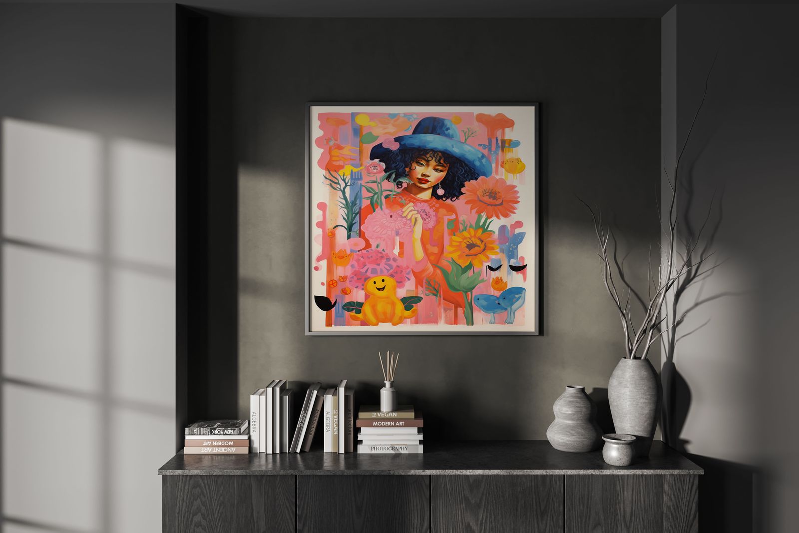 • Herfst en Winter: Naarmate de herfst en winter naderen, kun je je posters vervangen door meer warme en gezellige motieven. Gebruik afbeeldingen met warmere kleuren, herfstlandschappen of kunstwerken die een gevoel van warmte en comfort creëren, zoals bosscènes of minimalistische geometrische patronen.