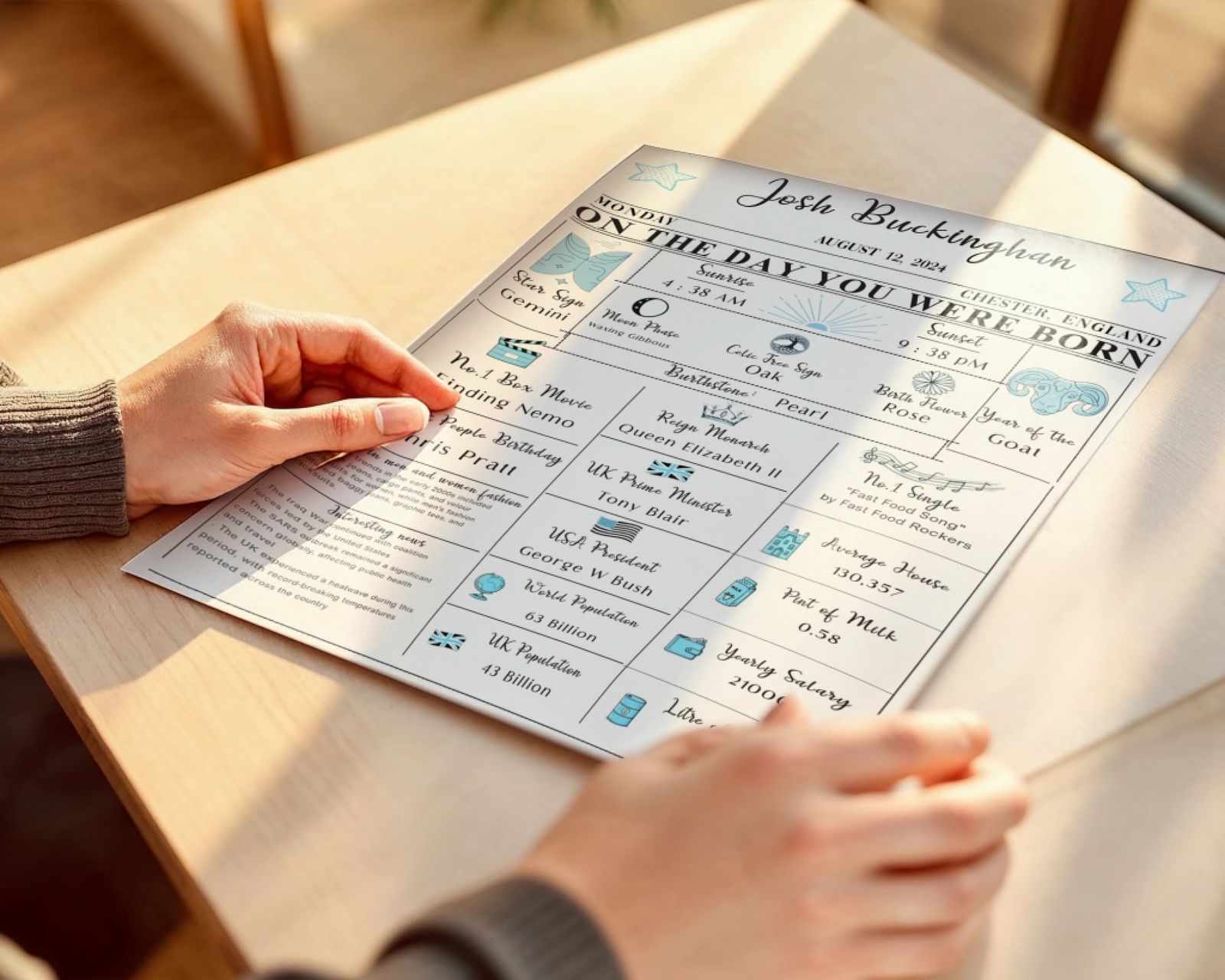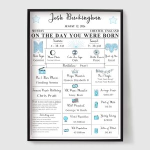 Vier het meest kostbare moment in het leven met onze gepersonaliseerde geboorte- en verjaardagsposters - prachtige op maat gemaakte prints ontworpen om de details van de aankomst van uw kind vast te leggen. In deze collectie kunt u een unieke poster maken door de naam, geboortedatum, tijd, gewicht en lengte van uw baby toe te voegen, waardoor speciale herinneringen worden omgezet in tijdloze muurkunst. Onze geboorte- en verjaardagsposters zijn verkrijgbaar in verschillende stijlen, van minimalistische en moderne ontwerpen tot zachte illustraties en speelse thema's - perfect voor het decoreren van een kinderkamer of als een attent cadeau voor een pasgeborene, babyshower of doop. Elke poster wordt op bestelling gemaakt en met zorg gedrukt om een hoogwaardige afwerking te garanderen die in elk huis prachtig staat. Een gepersonaliseerde geboorteposter is meer dan decoratie - het is een aandenken dat de dag bewaart waarop uw verhaal begon.
